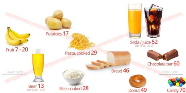 Here’s what you should not eat on low carb – foods full of sugar and starch. As you can see, these foods are much higher in carbs.